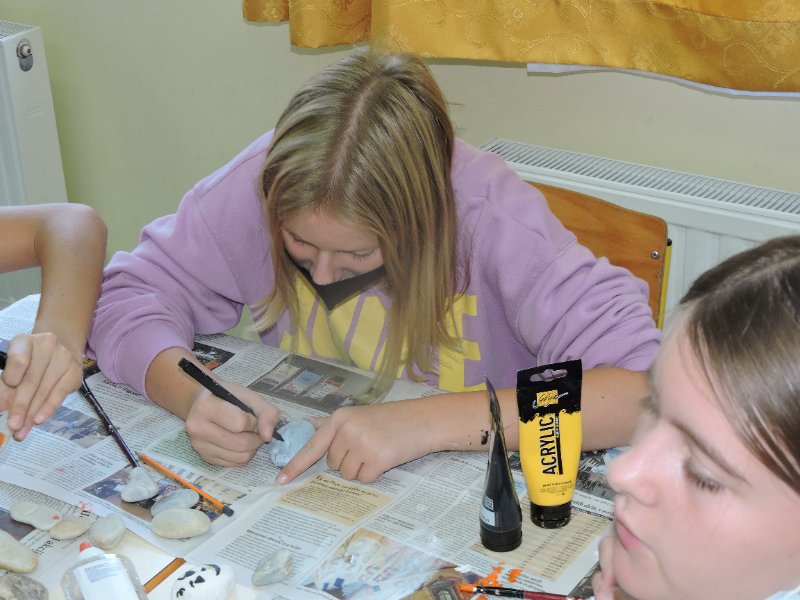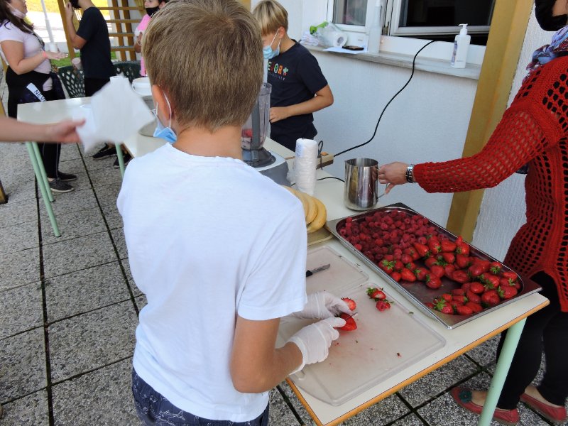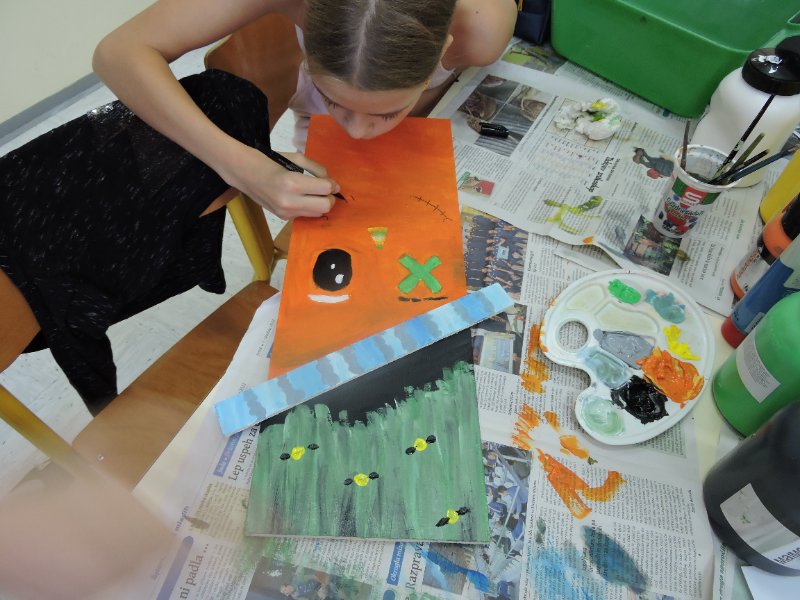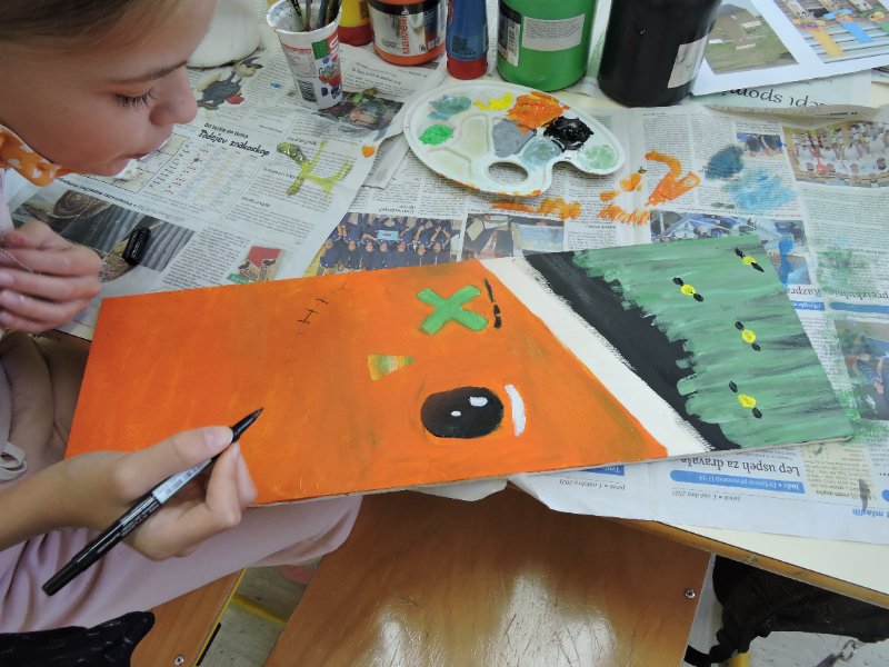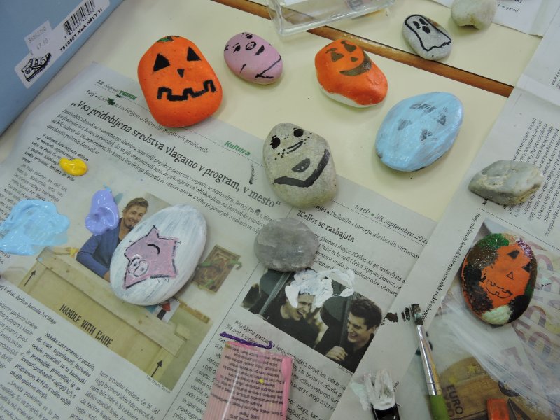 Danes je bil kulturni dan. Vsak je obiskal štiri delavnice. Najprej smo imeli ročna dela, kjer smo izdelali strašila, okrasne kamne, posode, okrašene kamne posode oblepljene z listjem. Umazali smo se z barvami in se zabavali. Na igrišču smo opravili razvedrilne delavnice: hoja s hoduljami, metanje frizbija, hoja po vrvi, vrtenje obročev. Nekateri so padali, predvsem fantje s hoduljami in hojo po traku. Tekmovali smo tudi v hoji s smučmi, kjer so zmagali fantje, čeravno je šlo na tesno. Po malici smo se posladkali s palačinkami in smutiji, ki smo ga naredili sami. V obračanju palačink smo pravi master shefi. Pri oblikovanju fejstbuka smo bili navdušeni nad vzorci. Veselo smo pozirali na fotografijah. Vse skupaj nam je bilo všeč. Vsekakor si bomo to izkušnjo zapolnili. Preživeli smo razigran dan, pri katerem smo neizmerno uživali.