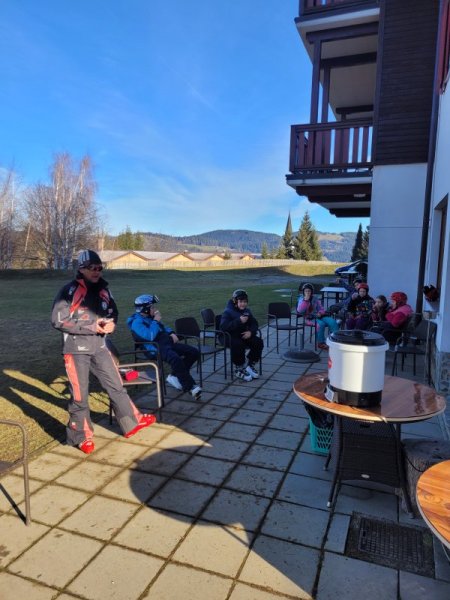 Najprej smo vstali in se oblekli. Sledil je zajtrk, ki je bil samopostrežni. Kot vsak dan po zajtrku, smo imeli nekaj prostega časa. Oblekli smo kombinezone in se odpravili smučat. Bili smo zelo žejni, privoščili smo si vroč čaj. Po čaju smo zopet smučali. Nato smo odšli v apartmaje in na kosilo, ki je bilo zelo dobro. Imeli smo prosto do 14. ure in nato smo upali, da ne zapade leden dež. Ker dežja ni bilo, smo šli vsi smučat – z vrha! Pote, smo se vrnili v apartmaje in se lotili pospravljanja. Pojedli smo pudinge in imeli sestanek. Po večerji sledi še tuširanje in spanec! (Julija Budja)