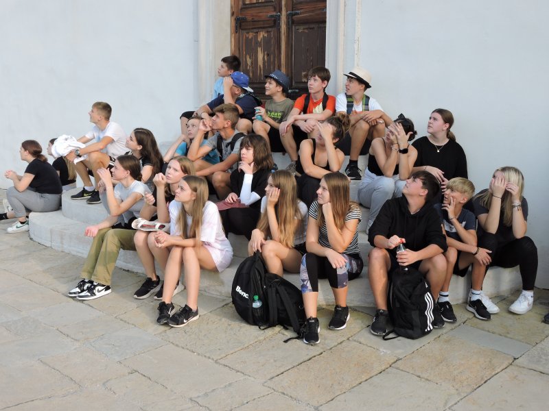 Zjutraj nas je pričakalo oblačno vreme. Za dober začetek jutra je dobro, da se razmigamo. Jutranja telovadba nam ne diši, je pa dobra za naše zdravje, še posebej, če je podkrepljena z močnim zajtrkom. Podnevi smo spoznali, da je pot do Pirana še lepša ob dnevni svetlobi. Sledil je ogled Pirana, od cerve Sv. Jurija, do Starega trga, Tartinijevega trga in protipoplavno zaščito Pirana, obzidje in baročno hišo. Te znamenitosti smo si ogledali skupaj pod vodstvom učiteljice Sonje. Nato smo reševali učne liste. Sprehodili smo se po ulicah Pirana, ter iskali znamenitosti Pirana. Ker smo pridno delali, nam je ostal čas za kepico sladoleda. Vrnitev je potekala po isti poti. Za kosilo so bili goveji zrezki. V popoldanskem času smo se v usmerjenem prostem času lahko kopali, igrali odbojko, karte ali nogomet. Sledil je pouk. Na začetku smo spoznali bibavico, v naslednjih dveh šolskih urah pa smo se vozili s kanuji. Za vožnjo je potrebna dobro izurjena ekipa, ki mora veslati kot eden. Še malo nazaj je to bila za nas težava, sedaj pa smo bili pohvaljeni. po večerji smo še enkrat odšli v Piran ob svetlobi naglavnih lučk. Piran je ponoči ob sijaju lučk res enkraten. Na Tartinijevem trgu smo dobili prosto za njegovo raziskovanje. Naša pot nas je vodila do sladoleda in pice. Mjami, kako je bilo dobro: Še prehitro smo se morali vrniti v dom. Sledi spet nočni počitek. Mi gremo spat, učitelj pa pisat prispevka za spletno stran.