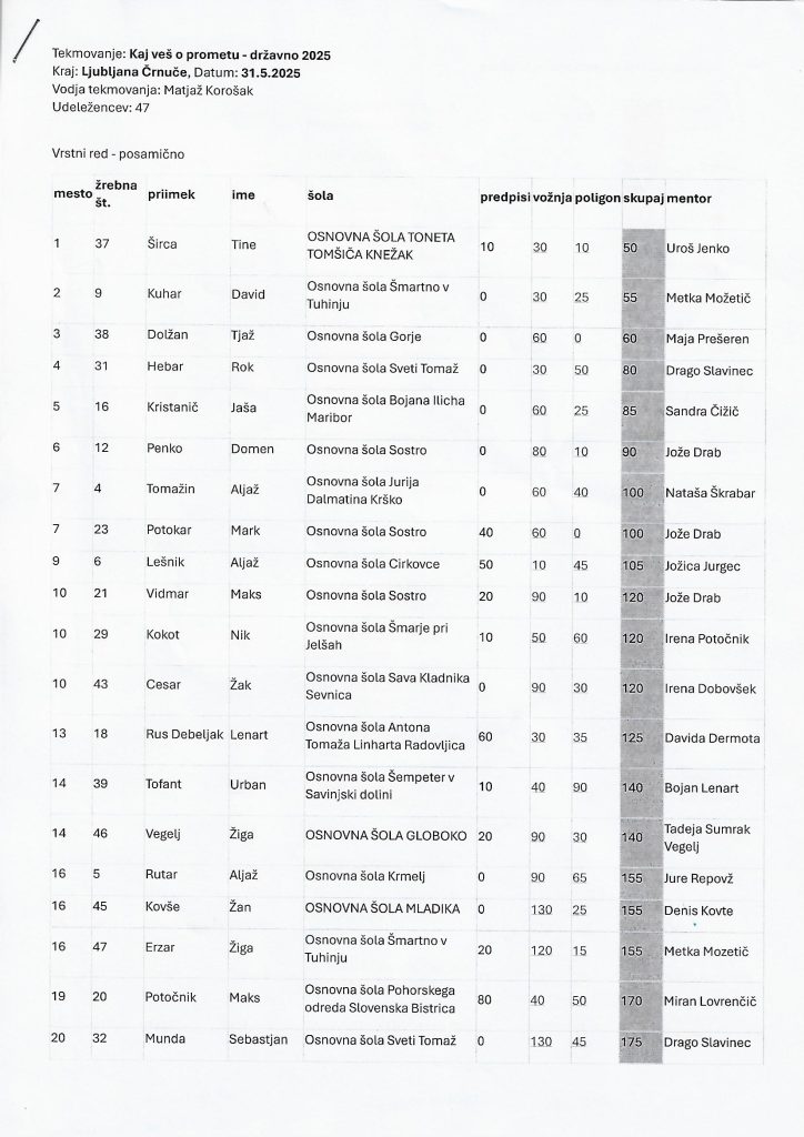 Sebastjan Munda pa je s dobro vožnjo in znanjem CPP osvojil 20. mesto.