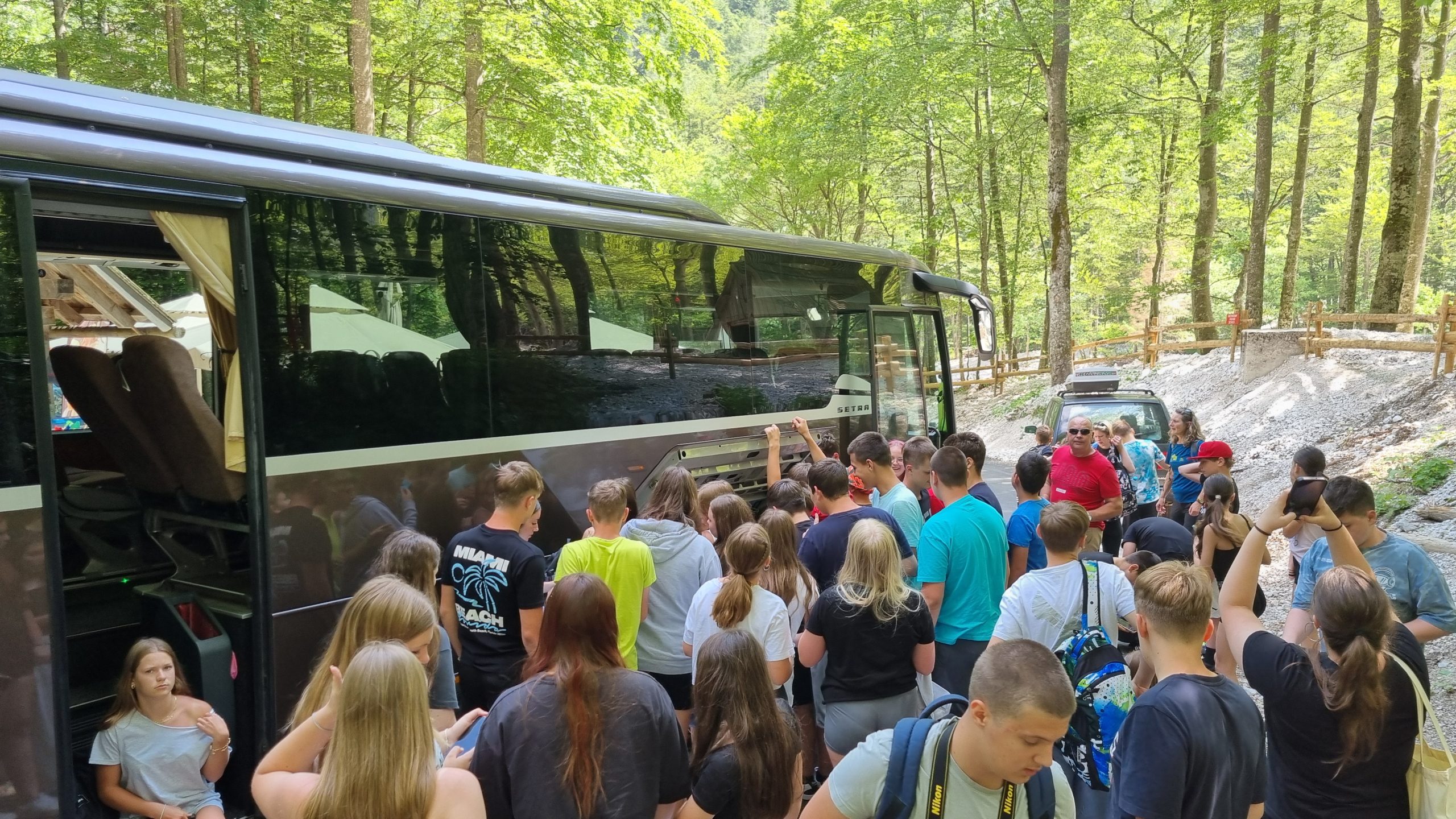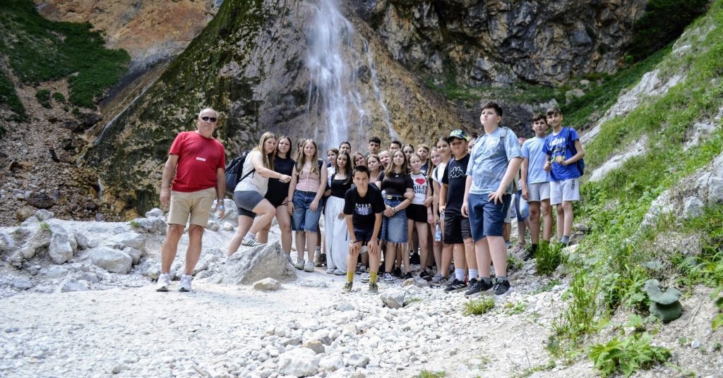 V četrtek, 12. 6. 2025, smo se učenci 6., 7., 8. in 9. razreda odpravili na celodnevno ekskurzijo, ki je združila zgodovino, naravoslovje in zabavo. Obiskali smo Muzej premogovništva Velenje, se sprehodili do slapa Rinka v Logarski dolini, dan pa zaključili s postankom pri McDonald’su. Naša prva postaja je bil Muzej premogovništva Velenje, kjer smo doživeli edinstveno izkušnjo – spustili smo se 160 metrov pod zemljo v nekdanje rudniške rove. Tam so nam rudarski vodiči skozi zanimive pripovedi predstavili težko življenje in delo rudarjev v preteklosti. Ogledali smo si rudarsko opremo, učilnico in celo rudarsko stanovanje. Voden ogled je bil nazoren in poučen, še posebej zanimivo pa je bilo, ko smo si nadeli čelade in se z rudarskim dvigalom odpravili v globino. Nepozabna je bila malica v rovu premogovnika, in tresenje tal ob nesreči v rudniku. Po tehnično-zgodovinskem dopoldnevu nas je pot vodila v Logarsko dolino, kjer smo se sprehodili do enega najvišjih slovenskih slapov – slapa Rinka. Sprehod skozi dolino je bil prava sprostitev, svež zrak in mogočnost narave pa sta navdušila prav vse. Slap Rinka, ki pada kar 90 metrov v globino, je ponudil čudovit pogled in priložnost za fotografiranje. Pri vižnji domov smo si privoščili še krajši postanek pri McDonald’su, kjer so učenci lahko potešili lakoto in se še zadnjič ta dan sproščeno družili. To je bil sproščujoč zaključek dneva, ki je združil poučnost, gibanje in druženje. Dan je bil poln zanimivih vsebin, smeha in novih spoznanj. Učenci so se domov vrnili utrujeni, a polni vtisov, ki jih bodo še dolgo nosili v spominu. Ekskurzija je lepo povezala tehniško, naravoslovno in družabno komponento ter dokazala, da se lahko učimo tudi zunaj učilnic – v pristnem stiku s preteklostjo in naravo.