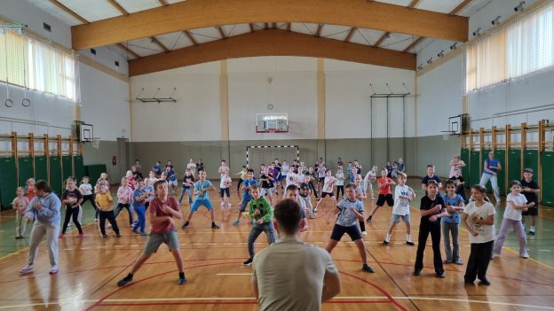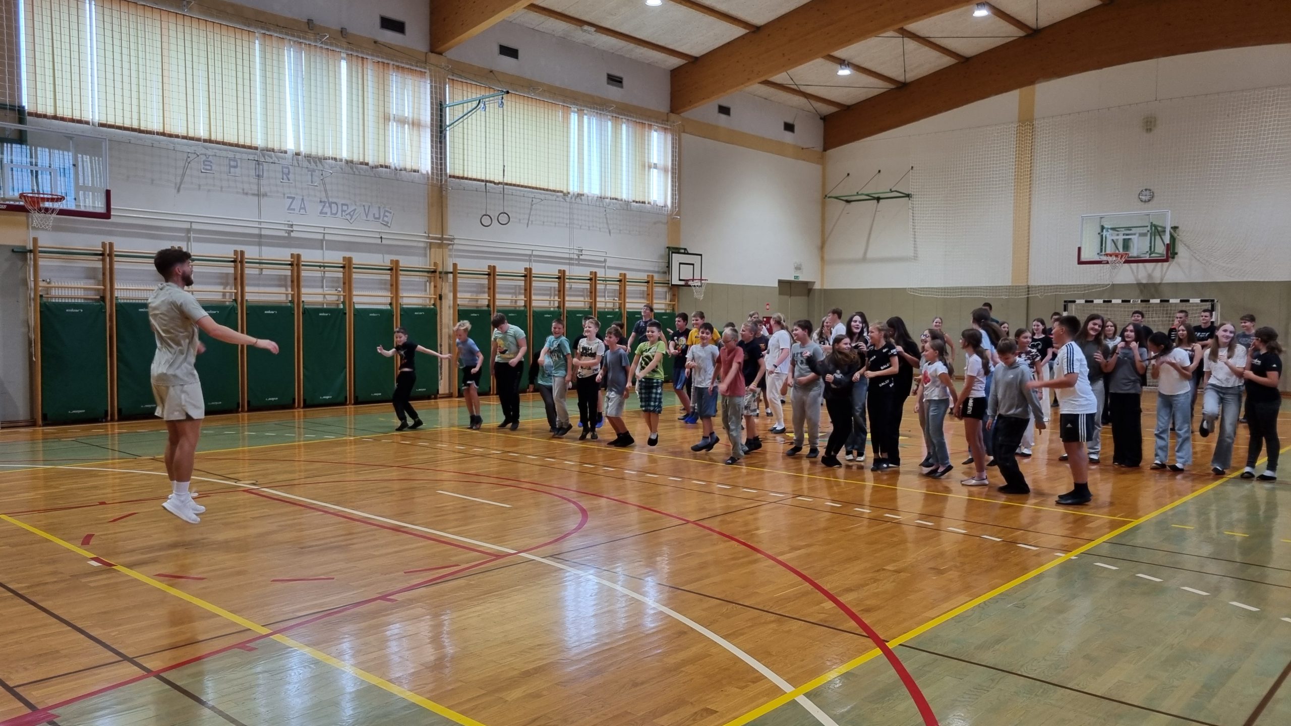 Pod vodstvom Domna so se učenci preizkusili v osnovnih korakih hip hopa. Telovadnica je bila polna glasbe, smeha in navdušenja – vsi smo plesali, se gibali in uživali v ritmih, ki so nam dvignili energijo.