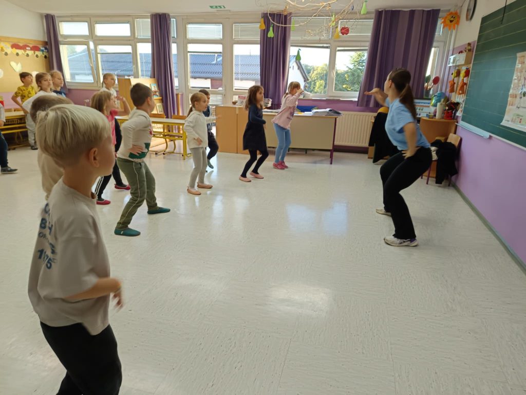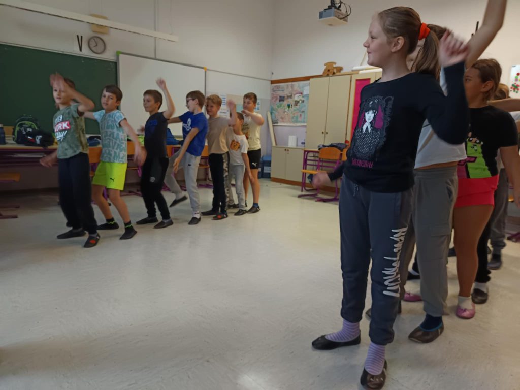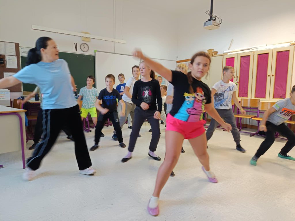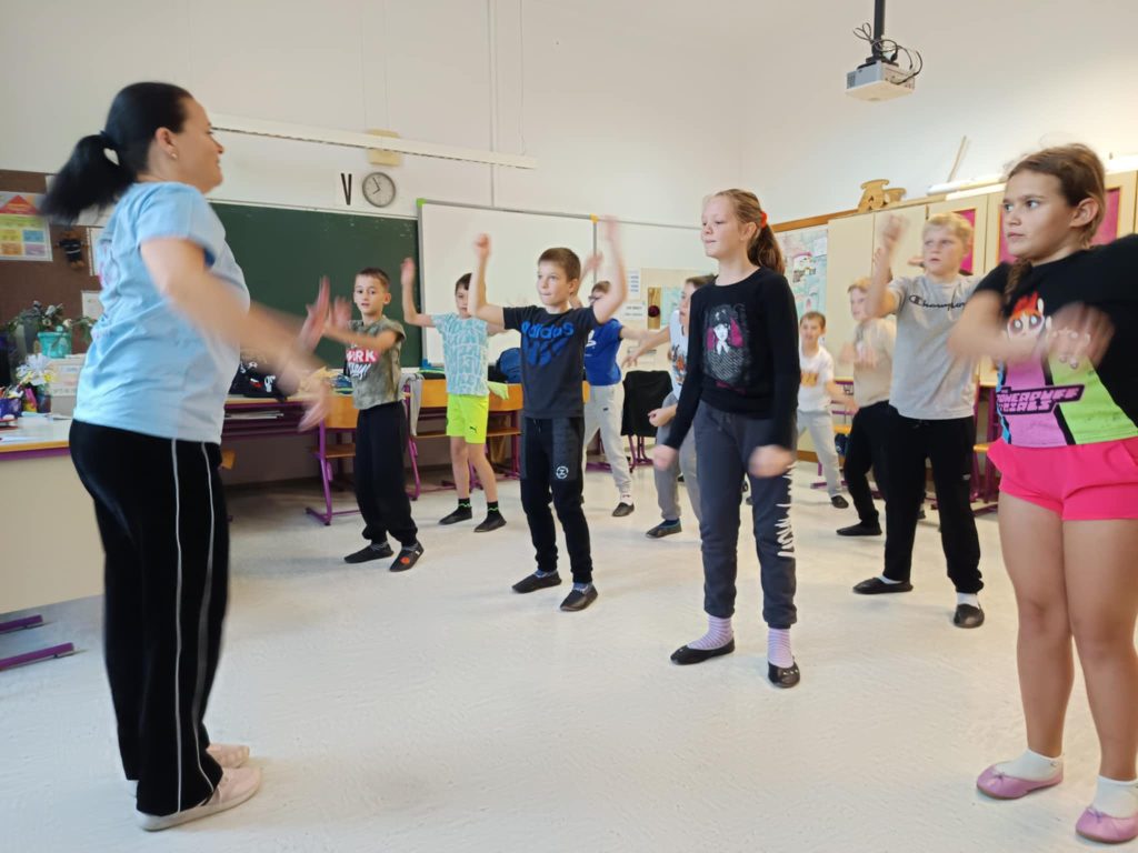 Danes smo na šoli imeli plesni dan za učence od 1. do 5. razreda. Obiskala nas je plesna šola Nina, ki je poskrbela za zabavno in razgibano dopoldne. Učenci so se naučili novih plesnih korakov, prisluhnili glasbi in uživali v gibanju, saj je gibanje v ritmu glasbe vedno prijetna in zabavna izkušnja. Vzdušje je bilo veselo, učenci pa navdušeni nad plesom.