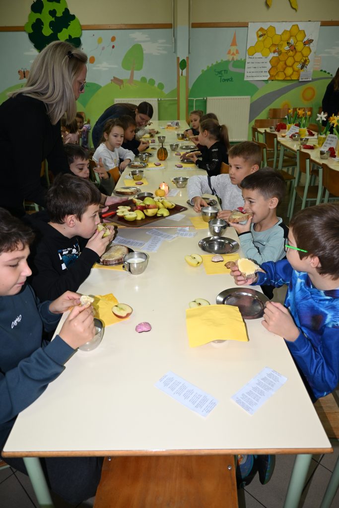 V petek, 21. novembra 2025, smo se na Osnovni šoli Sveti Tomaž ponovno pridružili vseslovenskemu projektu Tradicionalni slovenski zajtrk, ki že vrsto let poteka v okviru Tedna slovenske hrane. Ta dan je za naše učence in učitelje poseben praznik, saj nas povezuje v spoštovanju do domače hrane, slovenskega podeželja, čebelarstva ter zdravih prehranskih navad.