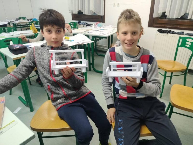 Današnji dan smo presmučali v zimski idili. Sneženje nam ni predstavljalo ovire, pač pa dodatno motivacijo. Ob koncu dneva nam ni primanjkovalo energije za izdelavo klopi iz papirja ter obiska telovadnice in koncerta zreške godbe na pihala z gosti Štajerskih 7.