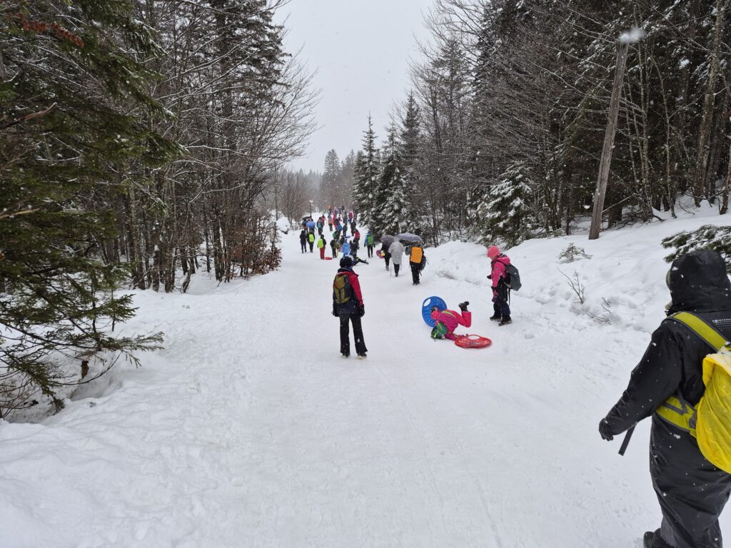 Z avtobusom smo se iz Ormoža odpeljali do Planice, ki je najbolj znana po smučarskih skakalnicah, na katerih vsako leto poteka zaključek svetovnega pokala. Peš smo se odpravili po dolini, ki je nadaljevanje doline Planica, do Doma v Tamarju. Dom se nahaja na nadmorski višini 1108 m, ob robu večjega travnika, od koder se nam odpre lep pogled na okoliške vrhove. Do doma so  v zimskem času speljane tekaške proge.  V koči smo se okrepčali, popili topel čaj. Med potjo smo uživali v vožnji z »lopatkami«, nekateri so s seboj imeli tudi sanke. Na parkirišču so nas pozdravile planiške skakalnice in Nordijski center. Hodili smo približno 3 ure. Vreme je bilo spremenljivo, najprej je deževalo, nato močno snežilo. Oglejte si nekaj utrinkov z naše poti.