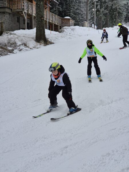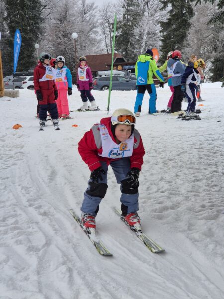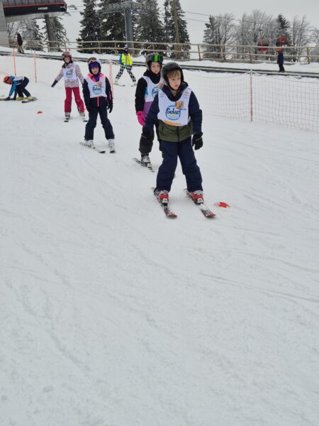 V ponedeljek, 2. 2. 2026, smo se z učenci 4.a udeležili akcije Šolar na smuči. Gre za vseslovenski projekt smučarskega ozaveščanja šolskih otrok, ki učencem osnovnih šol omogoča brezplačen sistematično voden smučarski dan na smučišču. Akciji smo se skupaj z OŠ Ivanjkovci pridružili na Mariborskem Pohorju. Ob prihodu smo od učiteljev tamkajšnje smučarske šole prejeli majice in uvodna navodila. Z gondolo smo se nato odpeljali do vrha, kjer smo se ogreli in pričeli s smučanjem. Začetniki so po uvodnem prilagajanju hitro usvojili prve smučarske korake, zato so se kmalu podali na smučišče. Naučili so se varno zaustaviti, večina od njih pa tudi preprostega vijuganja. Učenci smučarji so nadgradili svoje znanje in se nekateri prvič vozili s sedežnico.