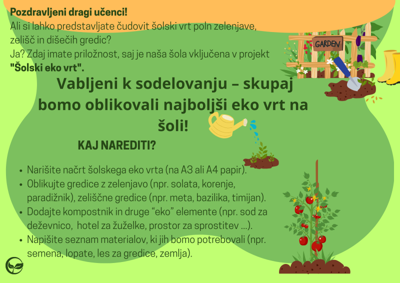 Vabljeni k sodelovanju – skupaj bomo oblikovali najboljši eko vrt na šoli!