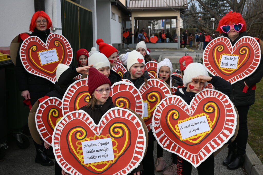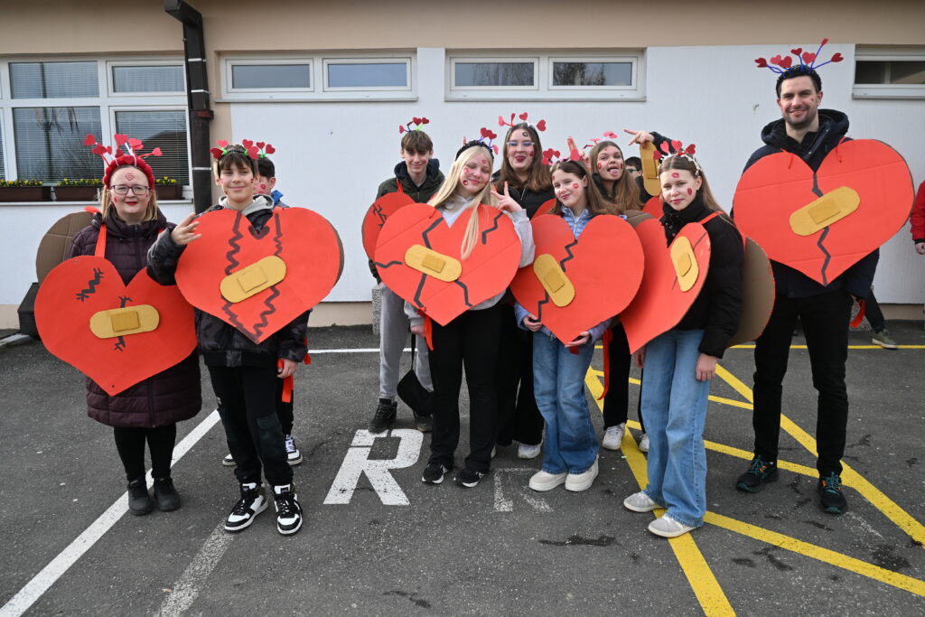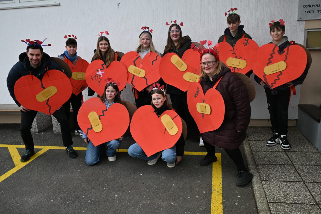 Pustni karneval v Svetem Tomažu je letos zažarel v prav posebnem duhu – v duhu ljubezni, topline in ustvarjalnosti. Učenci Osnovne šole Sveti Tomaž so se s ponosom in veseljem predstavili na karnevalski povorki, kjer je bila osrednja tema valentinovo. S skrbno izdelanimi maskami srčkov so prikazali bogastvo idej, čustev in otroške domišljije. Po ulicah so tako zaživeli lectarjeva srca, razočarane ljubezni, spominske kartice in ljubezniva sporočila, ki so s svojo barvitostjo in sporočilnostjo ogrevala srca obiskovalcev. Vsaka maska je nosila posebno zgodbo in sporočilo o prijateljstvu, prijaznosti in medsebojnem spoštovanju, kar je ustvarilo čudovito, povezano celoto. Poseben čar so dodali tudi otroci modre skupine iz vrtca, ki so skozi prikupno uprizoritev pravljice o kozličkih in volku navdušili z igrivostjo, pogumom in iskrenim nastopom. Njihova predstava je vsem prisotnim pričarala nasmeh in toplino. Karneval je bil prežet z dobro voljo, smehom in srčnostjo. Ponosni smo na naše učence in najmlajše, ki so s svojo ustvarjalnostjo, sodelovanjem in ljubeznijo do skupnosti obogatili dogodek ter dokazali, da skupaj ustvarjamo nepozabne in srčne trenutke.