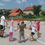 V petek, 8. 6. 2018, smo se z učenci prve skupine (1.-2. razred) zbrali na igrišču pri Svetem Tomažu in izvedli prvo brezplačno športno urico. Najprej smo se o projektu pogovorili, razdelili zbirne kartončke, s pomočjo katerih bodo učenci zbirali svoje obiske za prejem nagrad, in nato pričeli z gibalnimi dejavnostmi. Pričeli smo z igro lovljenja in razteznimi ter gimnastičnimi vajami, s pomočjo katerih smo poskrbeli za manjšo verjetnost poškodb. Nato smo oblikovali enakovredne skupine in pričeli s štafetnimi igrami, ki so vsebovale elemente tekov, poskokov in metov. Učenci so se pri igrah neizmerno zabavali, kar je jasno razvidno iz priloženih fotografij v galeriji. Po tem smo se sprostili in umirili z igro spretnosti premikanja skozi obroč. Čeprav je bilo zelo vroče, nas sončni žarki pri naši zabavi niso ovirali! Na koncu smo strnili svoje vrste in v en glas zavpili: “Rastemo s športom”.