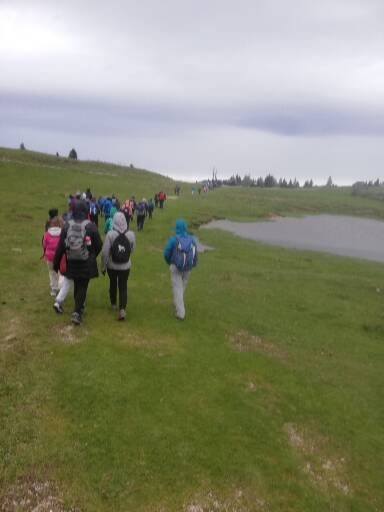 V soboto, 4. oktobra, smo se mladi planinci kar z dvema avtobusoma odpeljali na planinski izlet na Veliko planino. Tukaj so pastirji zgradili več pastirskih naselij s preko sto planinskimi stanovi (kočami, bajtami) posebnih oblik, ki so zaščitni znak planote. Z avtobusom smo se odpeljali do prelaza Volovljek in parkirišča Rakova raven ter nato pot peš nadaljevali najprej proti Mali in nato še proti Veliki planini. Njen najvišji vrh je 1666 metrov visoko Gradišče, s katerega seže pogled na vse smeri. Na Veliki planini smo se spustili v jamo udornico Vetrnica. To je bila kraška jama, ki se ji je porušil strop. Ustavili smo se ob kapeli Marije Snežne, ki je bila postavljena po načrtih arhitekta Plečnika.