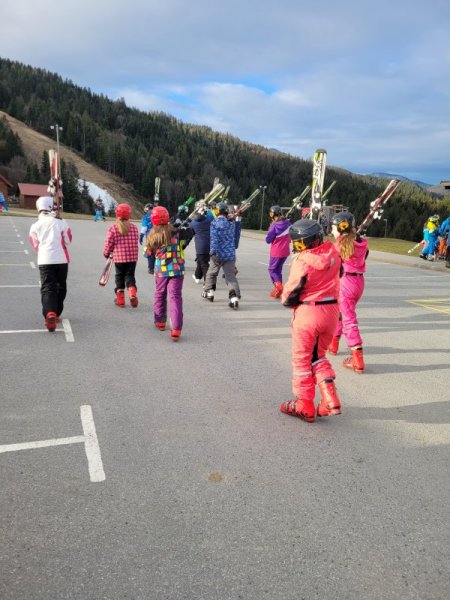Danes smo imeli velike načrte. Na smučišču smo bili že zelo hitro, saj smo želeli obnoviti in nadgraditi naše znanje. Tudi po kosilu je bilo malo počitka, saj smo smučali že od 13. ure dalje – takrat je smučišče prazno in imeli smo ga čisto, čisto zase.