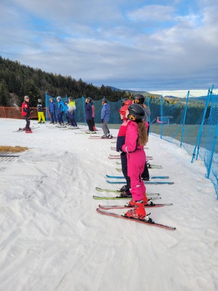 Danes smo imeli velike načrte. Na smučišču smo bili že zelo hitro, saj smo želeli obnoviti in nadgraditi naše znanje. Tudi po kosilu je bilo malo počitka, saj smo smučali že od 13. ure dalje – takrat je smučišče prazno in imeli smo ga čisto, čisto zase.