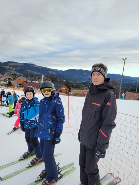 Danes smo imeli velike načrte. Na smučišču smo bili že zelo hitro, saj smo želeli obnoviti in nadgraditi naše znanje. Tudi po kosilu je bilo malo počitka, saj smo smučali že od 13. ure dalje – takrat je smučišče prazno in imeli smo ga čisto, čisto zase.