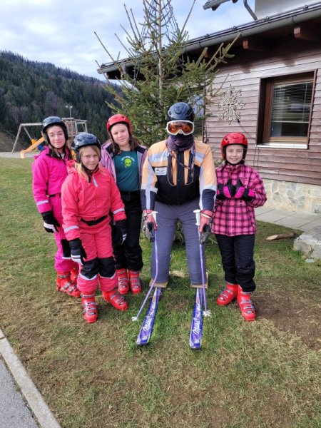 Danes smo imeli velike načrte. Na smučišču smo bili že zelo hitro, saj smo želeli obnoviti in nadgraditi naše znanje. Tudi po kosilu je bilo malo počitka, saj smo smučali že od 13. ure dalje – takrat je smučišče prazno in imeli smo ga čisto, čisto zase.