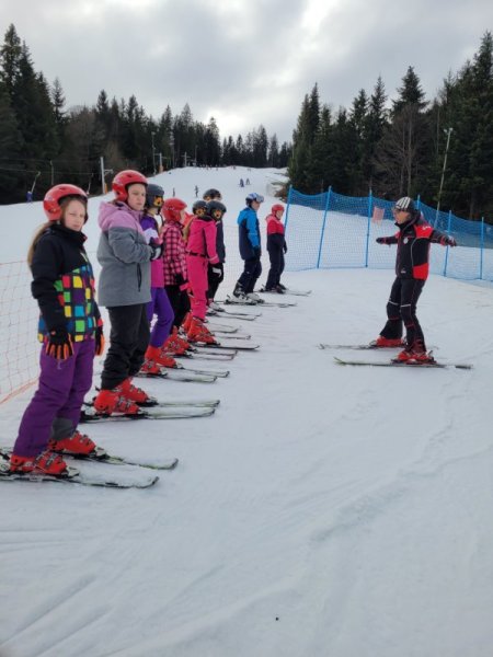 Danes smo imeli velike načrte. Na smučišču smo bili že zelo hitro, saj smo želeli obnoviti in nadgraditi naše znanje. Tudi po kosilu je bilo malo počitka, saj smo smučali že od 13. ure dalje – takrat je smučišče prazno in imeli smo ga čisto, čisto zase.