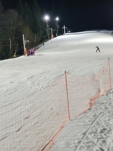 Zvečer nas čaka nočna smuka! Zato vam sporočamo, da se vam bomo danes oglasili šele po 20. uri. Mama in ata – naj vaju nič ne skrbi! Danes je bilo veliko padcev in veliko smeha, predvsem pa se vsi veselimo našega napredka! Se slišimo po nočni smuki!