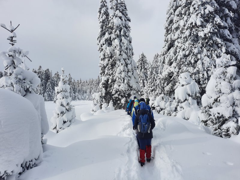 V soboto, 21. januarja, ob 7. uri, smo se učenci, starši in ostali spremljevalci z avtobusom odpeljali iz Sv. Tomaža do Ormoža, kjer so nas že čakali učenci iz OŠ Ormož in OŠ Središče s spremljevalci. Planinsko društvo Maks Meško Ormož je pripravilo zimski planinski izlet na Tri Kralje.  Peljali smo se skozi Ptuj do Slovenske Bistrice, kje smo zavili proti Trem Kraljem. Tam smo izstopili in se odpravili proti Črnemu jezeru ter Osankarice.  Nadmorska višini na vrhu je 1347 m, spodaj  1200 m. Hodili smo okrog 3,5 ure. Pot je v poletnem času nezahtevna, v soboto pa smo hodili po zasneženih poteh, snega je bilo res veliko. Pihal je tudi močan veter. A to nas ni odvrnilo od tega, da se po končanem pohodu ne bi s sankami in lopatkami spuščali po urejeni sankaški progi za cerkvijo. V hotelu Jakec smo popili vročo čokolado, čaj in se ob 15. uri odpeljali proti domu. Poglejte si nekaj utrinkov pravljične sobotne zimske idile …