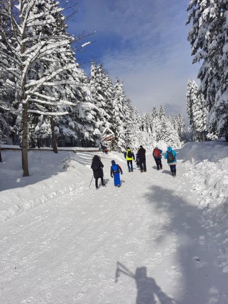V soboto, 21. januarja, ob 7. uri, smo se učenci, starši in ostali spremljevalci z avtobusom odpeljali iz Sv. Tomaža do Ormoža, kjer so nas že čakali učenci iz OŠ Ormož in OŠ Središče s spremljevalci. Planinsko društvo Maks Meško Ormož je pripravilo zimski planinski izlet na Tri Kralje. Peljali smo se skozi Ptuj do Slovenske Bistrice, kje smo zavili proti Trem Kraljem. Tam smo izstopili in se odpravili proti Črnemu jezeru ter Osankarice. Nadmorska višini na vrhu je 1347 m, spodaj 1200 m. Hodili smo okrog 3,5 ure. Pot je v poletnem času nezahtevna, v soboto pa smo hodili po zasneženih poteh, snega je bilo res veliko. Pihal je tudi močan veter. A to nas ni odvrnilo od tega, da se po končanem pohodu ne bi s sankami in lopatkami spuščali po urejeni sankaški progi za cerkvijo. V hotelu Jakec smo popili vročo čokolado, čaj in se ob 15. uri odpeljali proti domu. Poglejte si nekaj utrinkov pravljične sobotne zimske idile …
