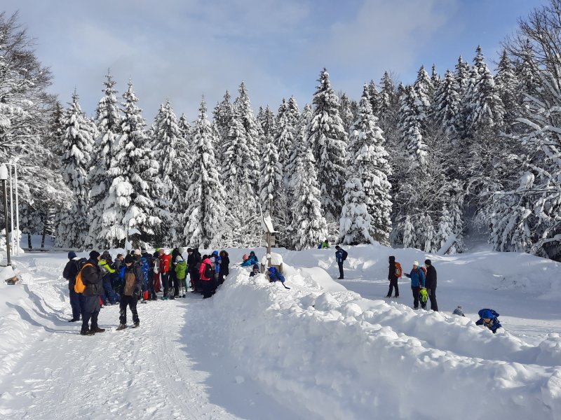 V soboto, 21. januarja, ob 7. uri, smo se učenci, starši in ostali spremljevalci z avtobusom odpeljali iz Sv. Tomaža do Ormoža, kjer so nas že čakali učenci iz OŠ Ormož in OŠ Središče s spremljevalci. Planinsko društvo Maks Meško Ormož je pripravilo zimski planinski izlet na Tri Kralje. Peljali smo se skozi Ptuj do Slovenske Bistrice, kje smo zavili proti Trem Kraljem. Tam smo izstopili in se odpravili proti Črnemu jezeru ter Osankarice. Nadmorska višini na vrhu je 1347 m, spodaj 1200 m. Hodili smo okrog 3,5 ure. Pot je v poletnem času nezahtevna, v soboto pa smo hodili po zasneženih poteh, snega je bilo res veliko. Pihal je tudi močan veter. A to nas ni odvrnilo od tega, da se po končanem pohodu ne bi s sankami in lopatkami spuščali po urejeni sankaški progi za cerkvijo. V hotelu Jakec smo popili vročo čokolado, čaj in se ob 15. uri odpeljali proti domu. Poglejte si nekaj utrinkov pravljične sobotne zimske idile …