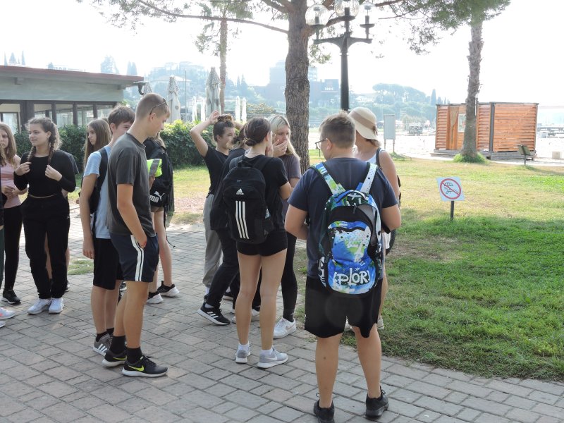 Ne moremo verjeti, danes je že četrtek, jutri gremo domov . Po opravljenem zajtrku in telovadbi,  smo se odpravili v Portorož, na vrsti je bil turizem. Tega v Portorožu res ne manjka. Grand hotel Bernardin *****je res nekaj posebnega. Za njim se nam je prikazal hotel Histrion**** .  Reševali učne liste, nato smo se pogovorili, kaj vse vpliva na turizem. Pot nas je vodila mimo slaščičarne. Kakšen sladoled. Mjami. Ste vedeli, da iz Portoroža lahko pridete v Strunjan skozi tunel, skozi njega je nekoč vozila železnica. V Strunjanu blizu solin se je podoba kraja močno spremenila. Najbolj nas je impresionirala naravna stena iz klifa. Čudovito. Pešačili smo mimo Pacuga in končno uspeli priti v Breženko. To pa je bil pohod in pol. Samo, da zvečer ne bi spet pešačili. Ko smo se najedli, naenkrat nismo bili več utrujeni, saj je bil prosti čas za odbojko, družabne igre, druženje. Čakali sta nas še dve vsebini: raziskovali smo obrežni pas morja. Ugotovili smo, da se morje zelo spreminja zaradi podnebnih sprememb. Saj drugače se 12. oktobra ne bi mogli kopati. Nato smo pripravili školjke na istrski način. Ta se razlikuje od dalmatinskeg. V istrskem  ne uporabljamo paradižnikove mezge.  Sami smo pripravili školjke pod učiteljevim vodstvom. Veste, da me zelo mika, da vam izdam, kdo sta bila kuharja. Imam čudovite posnetke, ki bodo zagledali luč na valeti. Zato vljudno vabljeni na našo valeto, kjer bo prikazano vse, kar ni za širšo javnost. Po večerji smo imeli zaključni ples. Srčki so kar poskakovali po plesišču. Mogoče  bi ostali še kakšen dan? Jutri pa že domov. Lahko noč.