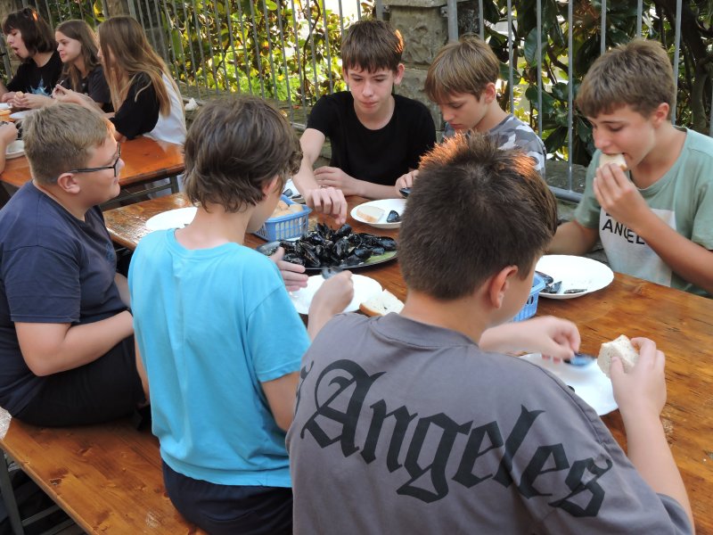 Ne moremo verjeti, danes je že četrtek, jutri gremo domov . Po opravljenem zajtrku in telovadbi,  smo se odpravili v Portorož, na vrsti je bil turizem. Tega v Portorožu res ne manjka. Grand hotel Bernardin *****je res nekaj posebnega. Za njim se nam je prikazal hotel Histrion**** .  Reševali učne liste, nato smo se pogovorili, kaj vse vpliva na turizem. Pot nas je vodila mimo slaščičarne. Kakšen sladoled. Mjami. Ste vedeli, da iz Portoroža lahko pridete v Strunjan skozi tunel, skozi njega je nekoč vozila železnica. V Strunjanu blizu solin se je podoba kraja močno spremenila. Najbolj nas je impresionirala naravna stena iz klifa. Čudovito. Pešačili smo mimo Pacuga in končno uspeli priti v Breženko. To pa je bil pohod in pol. Samo, da zvečer ne bi spet pešačili. Ko smo se najedli, naenkrat nismo bili več utrujeni, saj je bil prosti čas za odbojko, družabne igre, druženje. Čakali sta nas še dve vsebini: raziskovali smo obrežni pas morja. Ugotovili smo, da se morje zelo spreminja zaradi podnebnih sprememb. Saj drugače se 12. oktobra ne bi mogli kopati. Nato smo pripravili školjke na istrski način. Ta se razlikuje od dalmatinskeg. V istrskem  ne uporabljamo paradižnikove mezge.  Sami smo pripravili školjke pod učiteljevim vodstvom. Veste, da me zelo mika, da vam izdam, kdo sta bila kuharja. Imam čudovite posnetke, ki bodo zagledali luč na valeti. Zato vljudno vabljeni na našo valeto, kjer bo prikazano vse, kar ni za širšo javnost. Po večerji smo imeli zaključni ples. Srčki so kar poskakovali po plesišču. Mogoče  bi ostali še kakšen dan? Jutri pa že domov. Lahko noč.