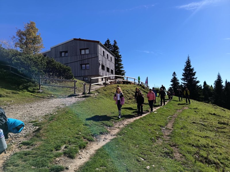 V soboto, 4. oktobra, smo se mladi planinci kar z dvema avtobusoma odpeljali na planinski izlet na Veliko planino. Tukaj so pastirji zgradili več pastirskih naselij s preko sto planinskimi stanovi (kočami, bajtami) posebnih oblik, ki so zaščitni znak planote. Z avtobusom smo se odpeljali do prelaza Volovljek in parkirišča Rakova raven ter nato pot peš nadaljevali najprej proti Mali in nato še proti Veliki planini. Njen najvišji vrh je 1666 metrov visoko Gradišče, s katerega seže pogled na vse smeri. Na Veliki planini smo se spustili v jamo udornico Vetrnica. To je bila kraška jama, ki se ji je porušil strop. Ustavili smo se ob kapeli Marije Snežne, ki je bila postavljena po načrtih arhitekta Plečnika.