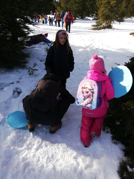 Z avtobusom smo se iz Sv. Tomaža odpeljali do Ribnice na Pohorju in Koče Pesnik ter nato peš nadaljevali pot do Ribniške koče na višini 1507 m, kjer smo se okrepčali in popili topel čaj. Povzpeli smo se še na Ribniški ali Jezerski vrh, ki meri 1537 m in je med najvišjimi pohorskimi vrhovi. Je približno 15 minut oddaljen od Ribniške koče. Na vrhu, ki ni poraščen z gozdom, je lep razgled po Pohorju. Na vrhu stoji visok spomenik, ki je posvečen padlim planincem. Sprehodili smo se do slikovitega Ribniškega jezera, ki leži tik pod Ribniškim vrhom in ni pravo jezero, ampak šotno barje. Ob njem je šest manjših jezerc ali »barjanskih oken«. Jezero  je pomembna naravna znamenitost Pohorja. Najbolj smo uživali v vožnji z »lopatkami« po hribu. Hodili smo približno 4 ure. Vreme je bilo toplo za ta čas, a se je hitro spreminjalo. Oglejte si nekaj utrinkov z naše poti.