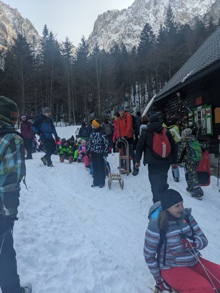 V soboto, 27. januarja, ob 5.30. uri smo se učenci, starši, spremljevalci, z avtobusom odpeljali iz Sv. Tomaža do Ormoža, kjer so nas že čakali ostali pohodniki. Planinsko društvo Maks Meško Ormož je pripravilo zimski planinski izlet v Krnico. Krnica je približno 6 km dolga dolina, ki leži južno od  Kranjske gore, na območju Triglavskega narodnega parka med mogočnim dvatisočaki. Peljali smo se mimo Ljubljane in zavili proti Kranjski Gori. Izstopili  smo pri jezeru Jasna in se odpravili proti Koči v Krnici, ki leži na nadmorska višini 1113 m. Pred kočo smo se igrali, popili vroč čaj, pojedli nekaj toplega. Nato smo se odpravili nazaj proti avtobusu. S sankami in lopatkami  smo se spuščali v dolino. Dan je bil lep, sončen, hladen. Hodili smo okrog 4 ure. Poglejte si nekaj utrinkov sobotne zimske idile …
