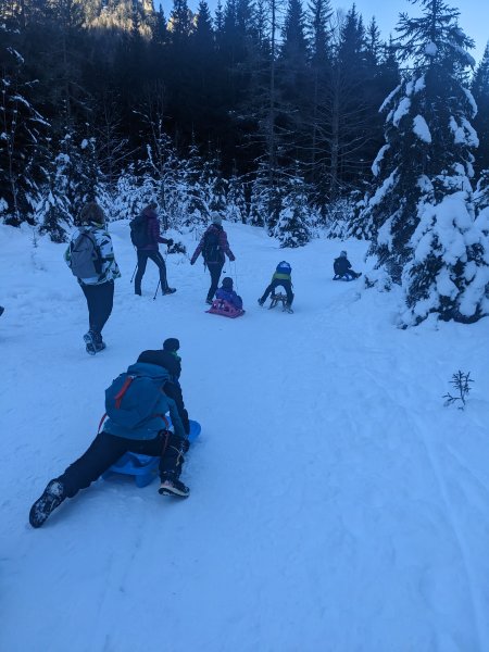 V soboto, 27. januarja, ob 5.30. uri smo se učenci, starši, spremljevalci, z avtobusom odpeljali iz Sv. Tomaža do Ormoža, kjer so nas že čakali ostali pohodniki. Planinsko društvo Maks Meško Ormož je pripravilo zimski planinski izlet v Krnico. Krnica je približno 6 km dolga dolina, ki leži južno od  Kranjske gore, na območju Triglavskega narodnega parka med mogočnim dvatisočaki. Peljali smo se mimo Ljubljane in zavili proti Kranjski Gori. Izstopili  smo pri jezeru Jasna in se odpravili proti Koči v Krnici, ki leži na nadmorska višini 1113 m. Pred kočo smo se igrali, popili vroč čaj, pojedli nekaj toplega. Nato smo se odpravili nazaj proti avtobusu. S sankami in lopatkami  smo se spuščali v dolino. Dan je bil lep, sončen, hladen. Hodili smo okrog 4 ure. Poglejte si nekaj utrinkov sobotne zimske idile …