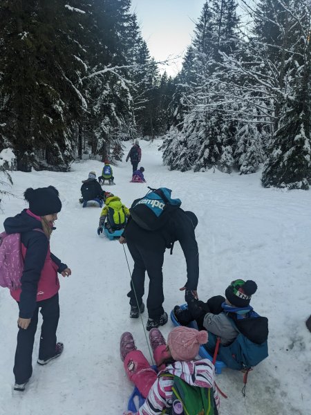 V soboto, 27. januarja, ob 5.30. uri smo se učenci, starši, spremljevalci, z avtobusom odpeljali iz Sv. Tomaža do Ormoža, kjer so nas že čakali ostali pohodniki. Planinsko društvo Maks Meško Ormož je pripravilo zimski planinski izlet v Krnico. Krnica je približno 6 km dolga dolina, ki leži južno od  Kranjske gore, na območju Triglavskega narodnega parka med mogočnim dvatisočaki. Peljali smo se mimo Ljubljane in zavili proti Kranjski Gori. Izstopili  smo pri jezeru Jasna in se odpravili proti Koči v Krnici, ki leži na nadmorska višini 1113 m. Pred kočo smo se igrali, popili vroč čaj, pojedli nekaj toplega. Nato smo se odpravili nazaj proti avtobusu. S sankami in lopatkami  smo se spuščali v dolino. Dan je bil lep, sončen, hladen. Hodili smo okrog 4 ure. Poglejte si nekaj utrinkov sobotne zimske idile …